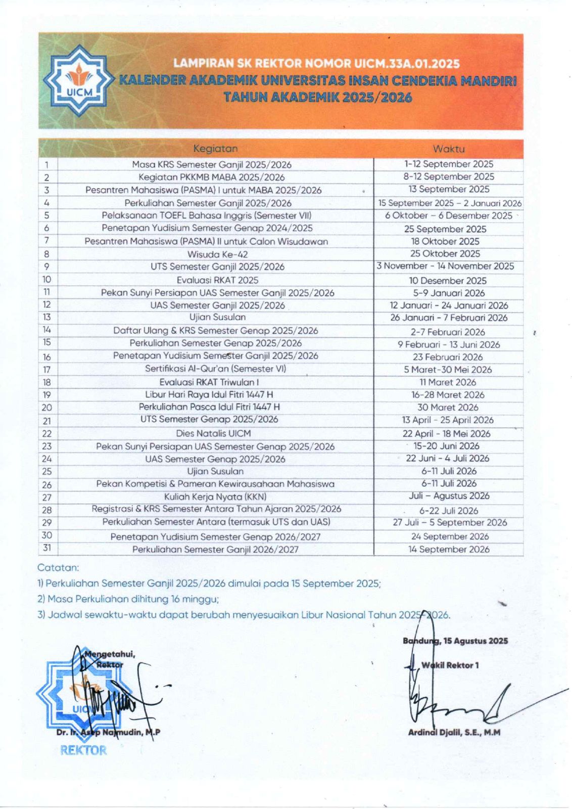 KALENDER AKADEMIK TAHUN AKADEMIK 2025/2026